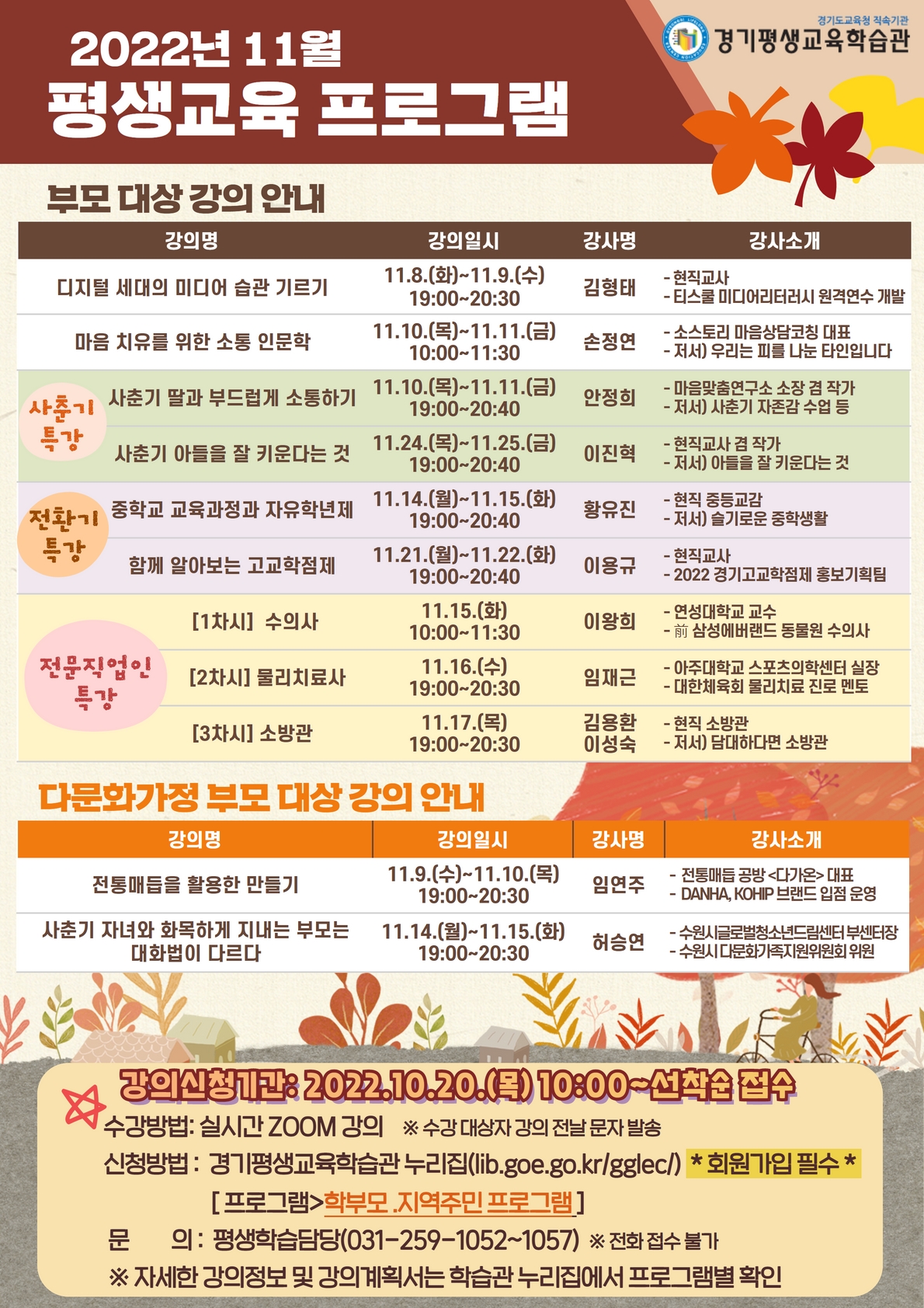 [ÀϹÝ] °æ±âÆò»ý±³À°ÇнÀ°ü 11¿ù ºÎ¸ð´ë»ó Æò»ý±³À° ÇÁ·Î±×·¥ ¼ö°­»ý ¸ðÁý ¾È³»ÀÇ Ã·ºÎÀ̹ÌÁö 1
